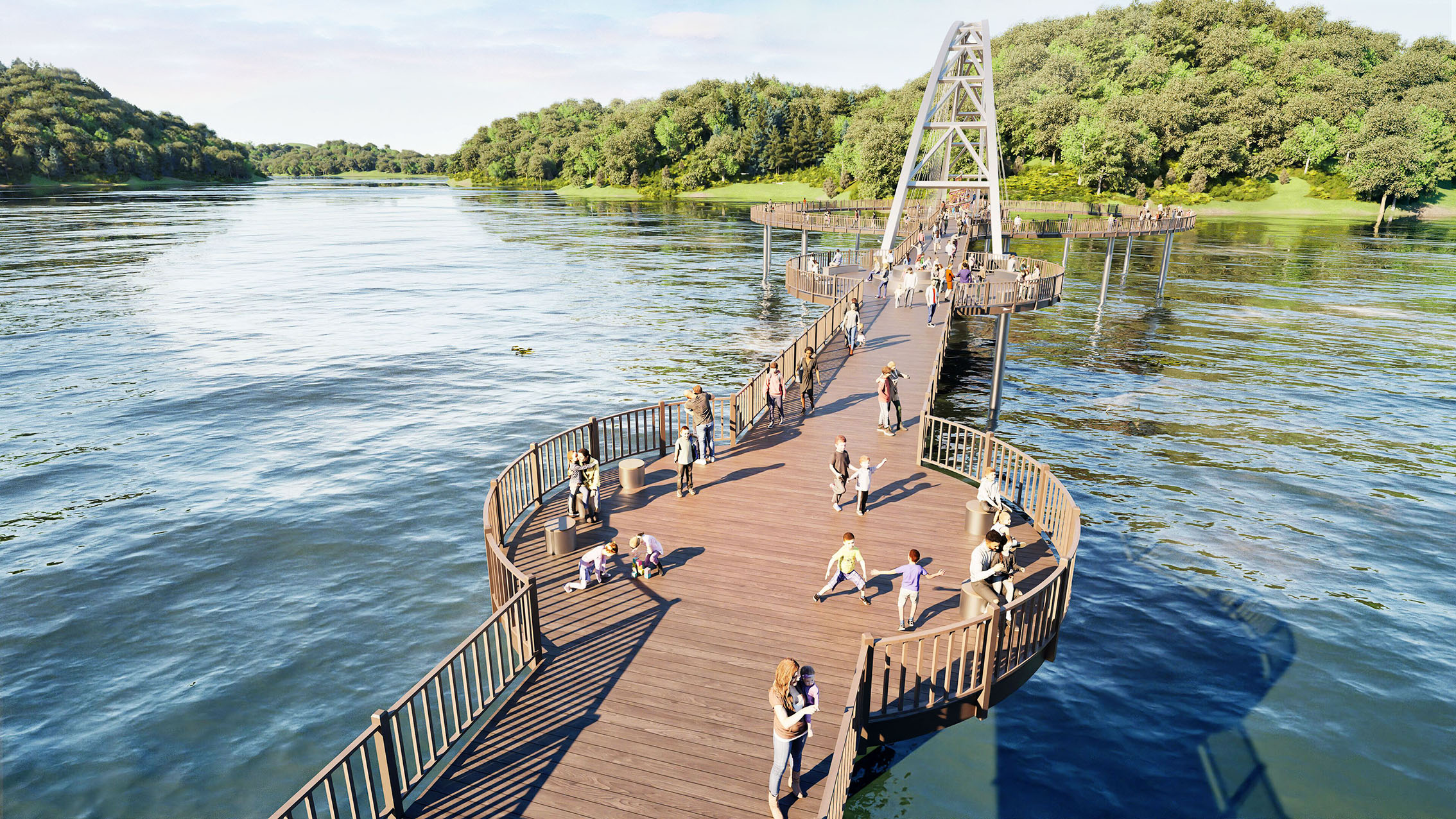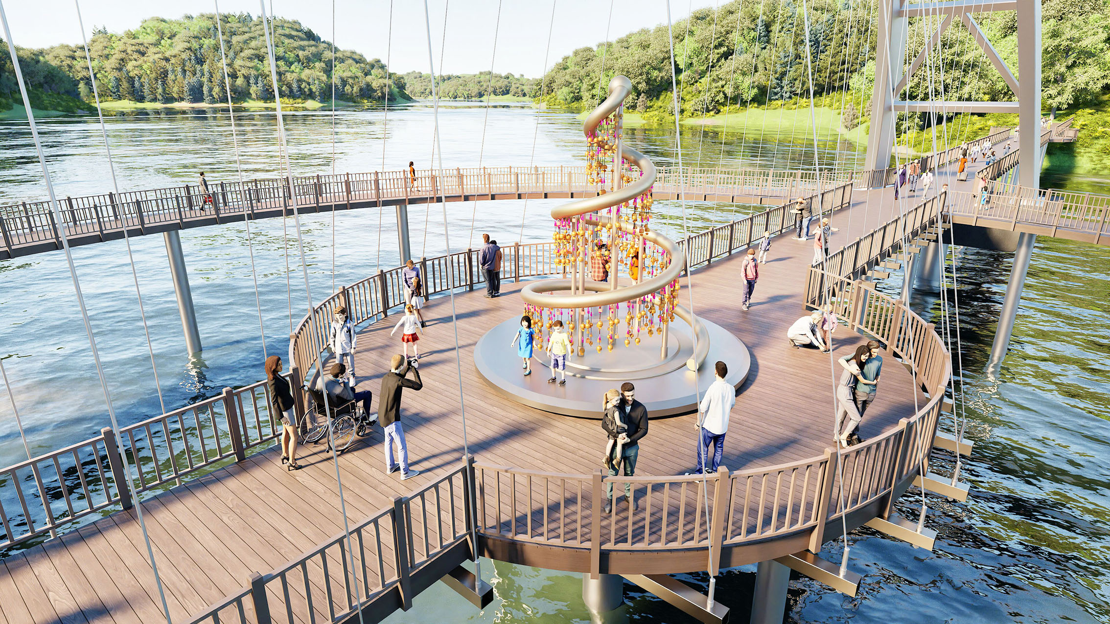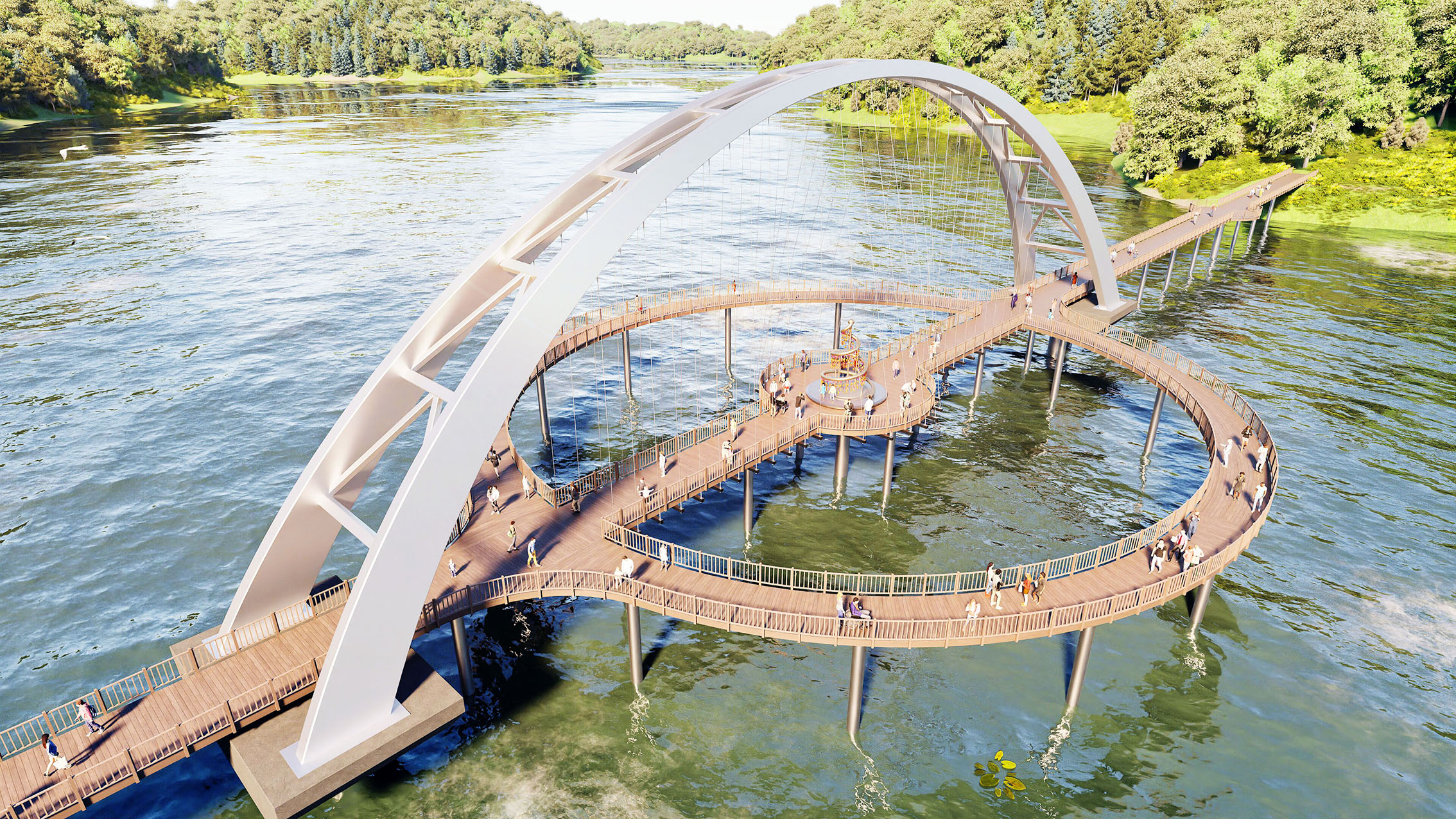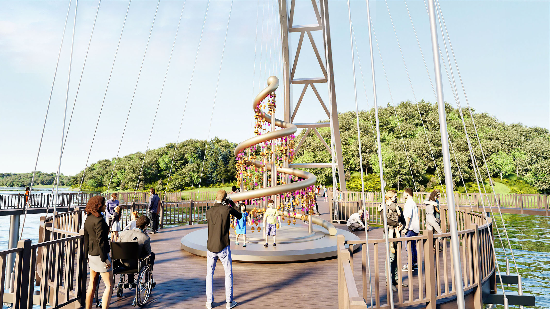 기존 교량의 일방적인 직선 통행이 아닌 원형의 동선을 조합하여 관광객들에게 새로운 시각적 다양성의 체험을 제공