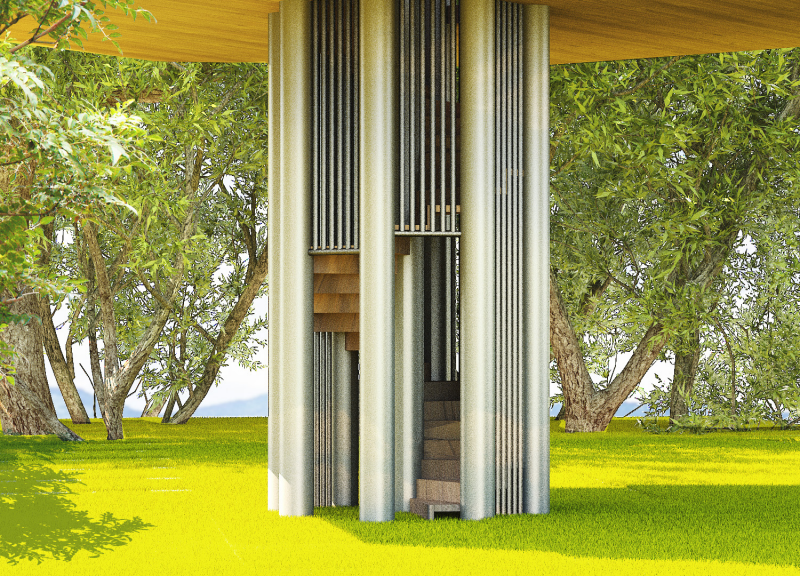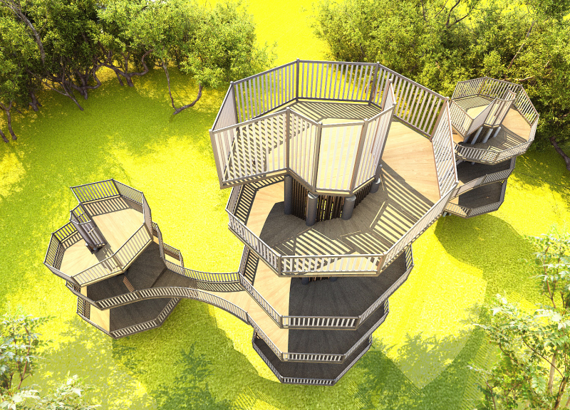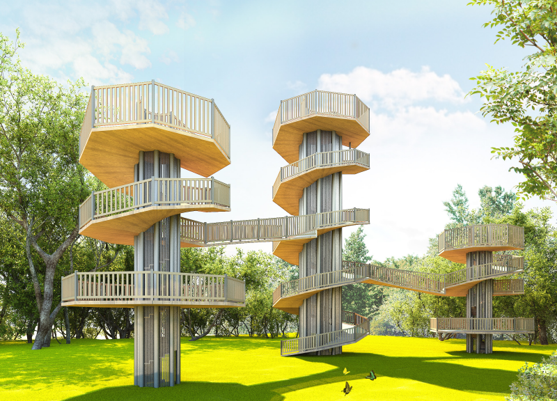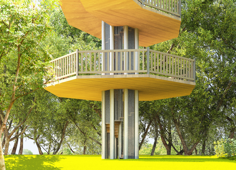 주변 경관을 조망할 수 있는 높이 있는 수직 전망대로 숲의 중 상부에 설치하여 주변 풍경과 시내 전경 등을 한눈에 볼 수 있는 시설물